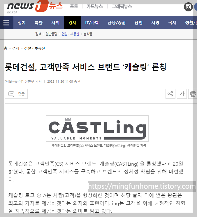롯데건설에서 론칭한 고객만족 서비스 브랜드였네요!