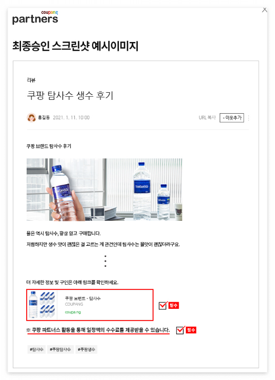 상품링크와 쿠파스 문구를 포함해서