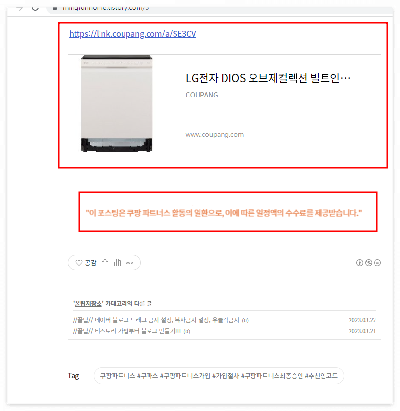 얼마 전 쿠팡파트너스 가입