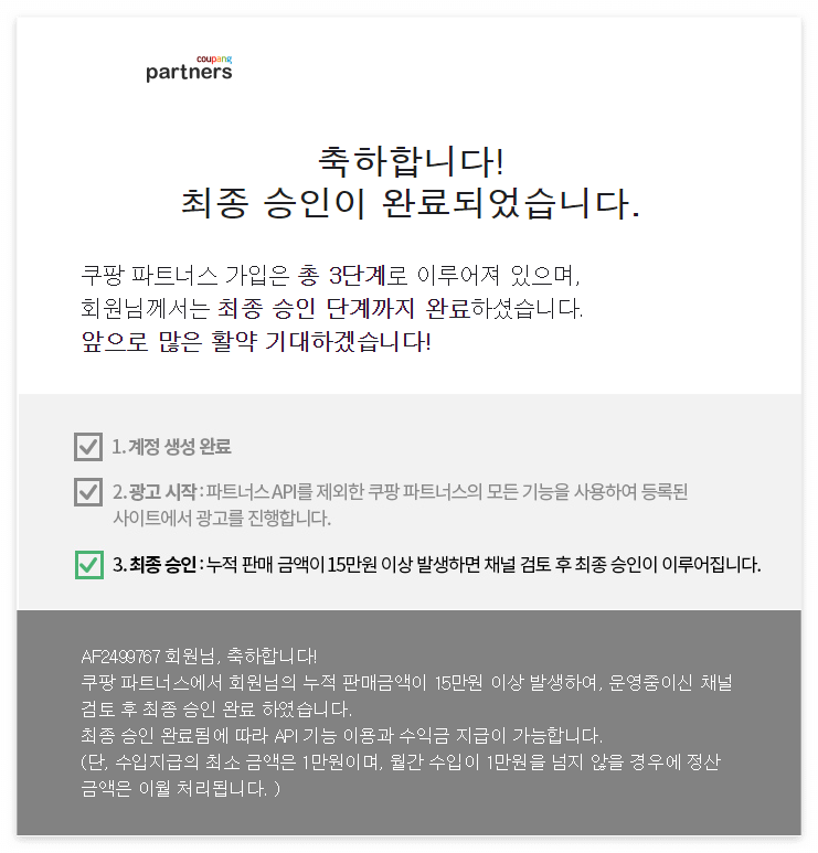 쿠팡파트너스 승인 완료