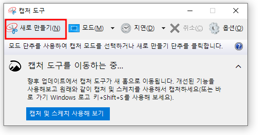 캡처도구의 "새로 만들기"를 눌러서 캡처해 줘요.