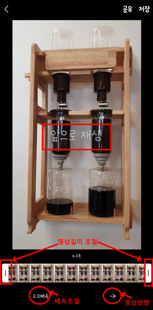 영상방향(앞으로, 뒤로, 앞뒤로 재생)
